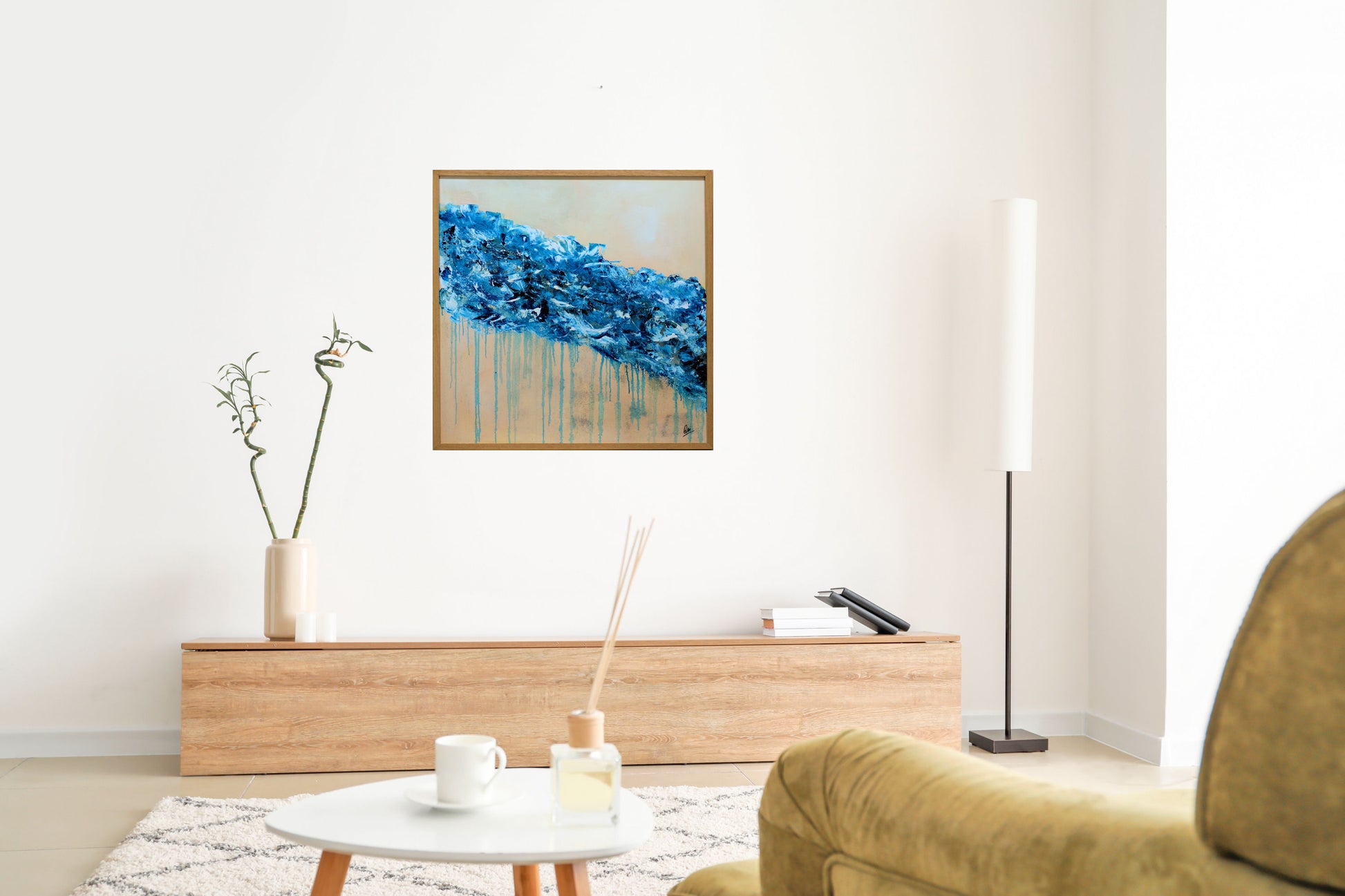 Blue Bloom ist ein einzigartiges abstraktes Kunstwerk, inspiriert von floralen Bewegungen in der Natur. Mit lebendigen Blautönen, zartem Weiß und sanftem Beige vermittelt das Gemälde eine kraftvolle Leichtigkeit – wie vom Wind verwehte Blütenblätter oder fallende Regentropfen nach einem Sommerregen.