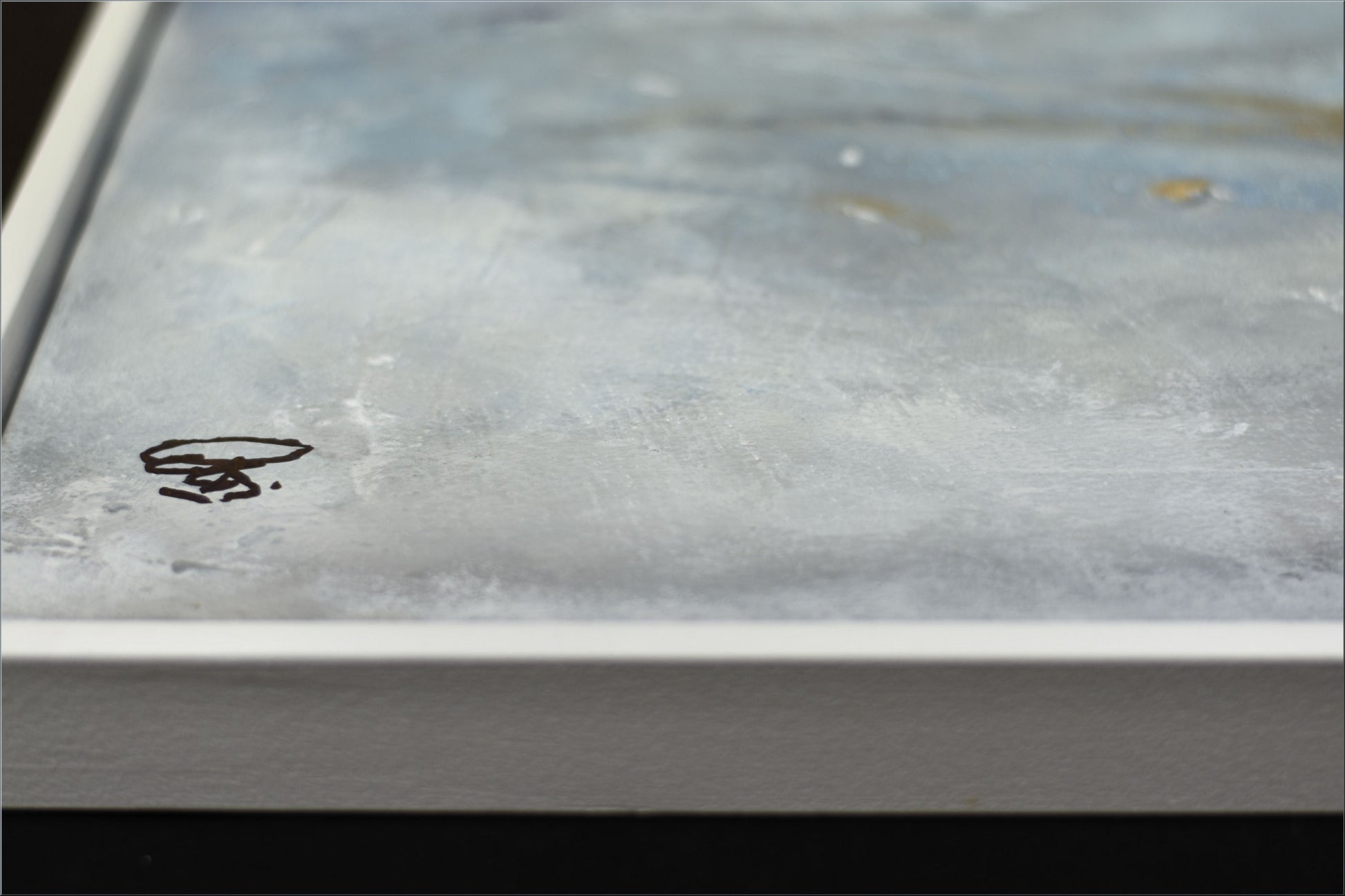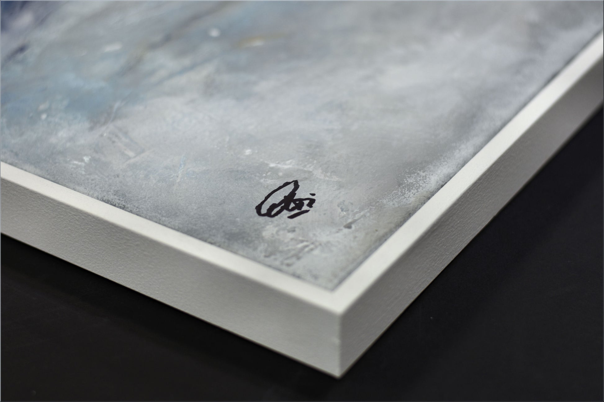 - Framed in a white wooden floater frame (Larson-Juhl)