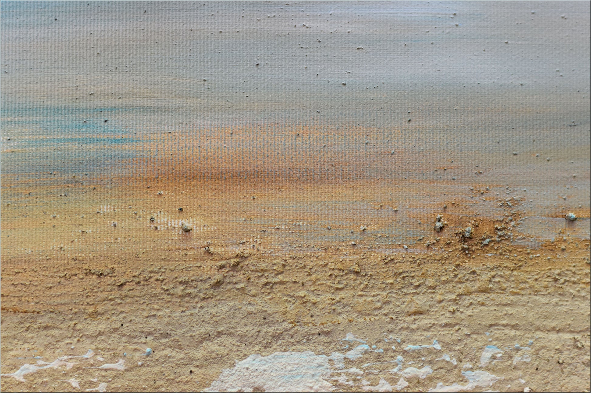 • Acrylfarben auf Leinwand mit strukturierter Oberfläche und Sandapplikationen