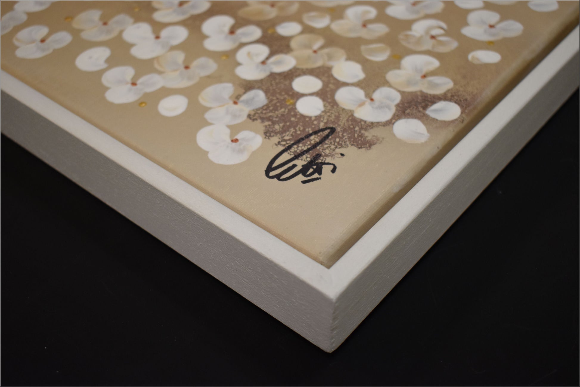 The artwork’s refined composition and delicate details bring a serene yet expressive presence to any interior. Stretched on sturdy wooden stretcher bars and set in a white floater frame by Larson-Juhl, this piece comes ready to hang and makes a graceful focal point in modern living spaces.