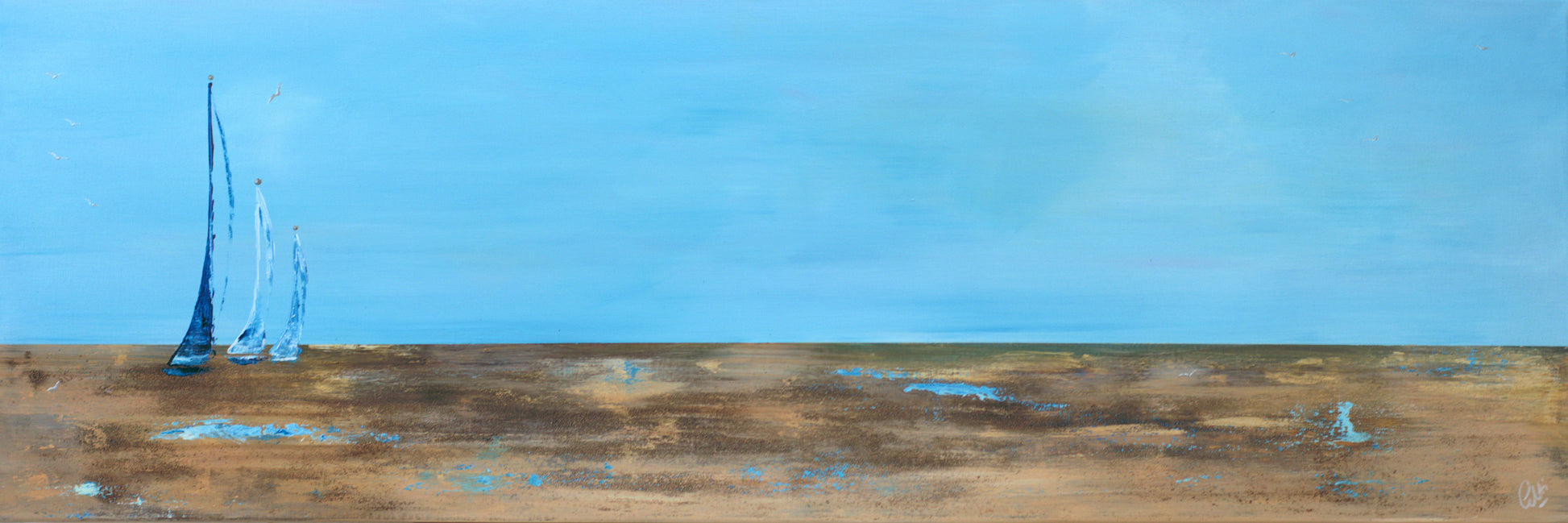 Sailing Silence – Abstract Coastal Painting | 123 × 43 cm | Edelgard Schroer